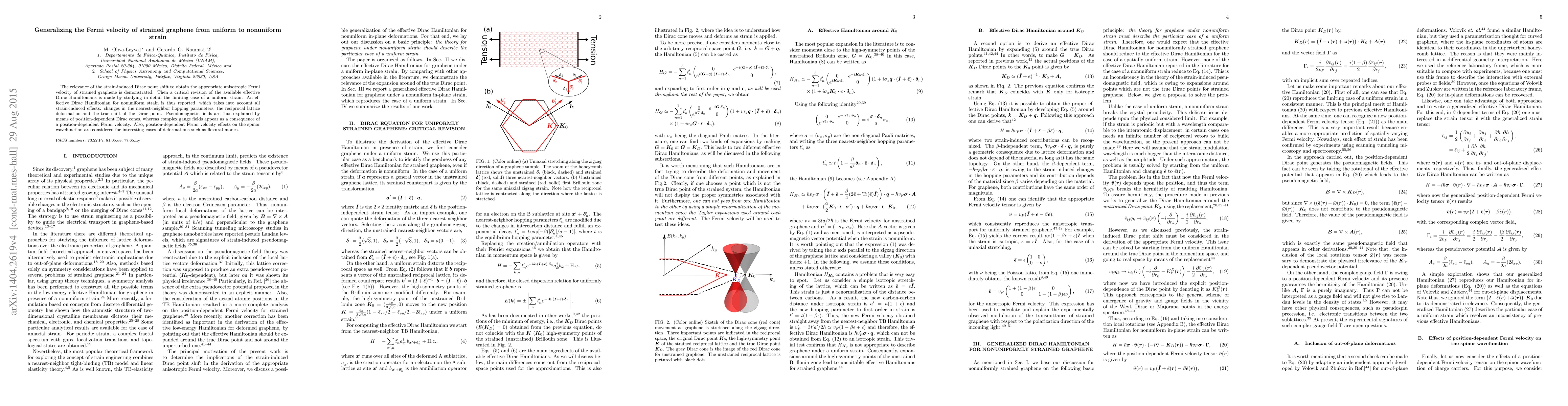 This paper generalizes the Fermi velocity in strained graphene from uniform to nonuniform strain, demonstrating the strain-induced Dirac point shift's importance. It revises existing effective Dirac Hamiltonians and proposes a new one for nonuniform strain, explaining pseudomagnetic fields via position-dependent Dirac cones and considering the impact of Fermi velocity on spinor wavefunctions.