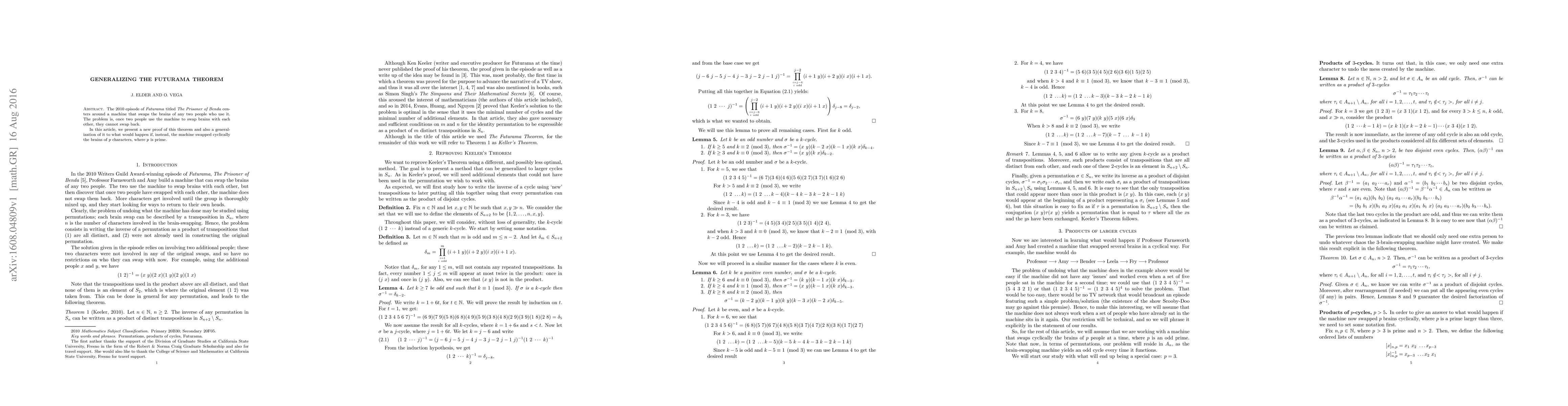 The 2010 episode of \emph{Futurama} titled \emph{The Prisoner of Benda} centers around a machine that swaps the brains of any two people who use it. The problem is, once two people use the machine to swap brains with each other, they cannot swap back. In this article, we present a new proof of this theorem and also a generalization of it to what would happen if, instead, the machine swapped cyclically the brains of $p$ characters, where $p$ is prime.