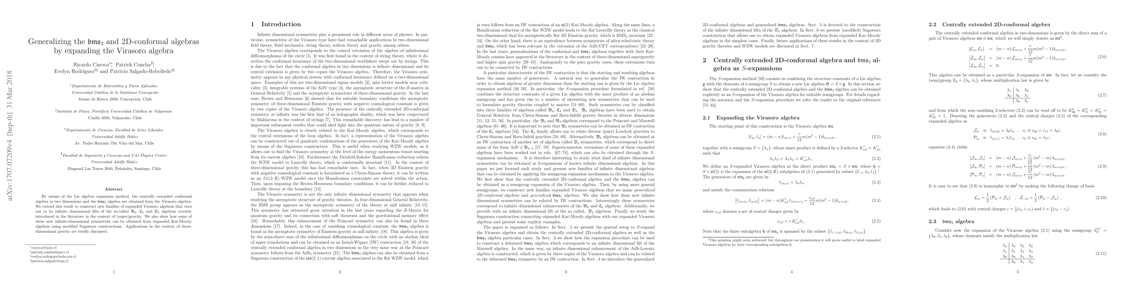 This paper generalizes the $\mathfrak{bms}_{3}$ and 2D-conformal algebras by expanding the Virasoro algebra through Lie algebra methods. It constructs new infinite-dimensional symmetries, linking them to $\mathfrak{B}_{k}$, $\mathfrak{C}_{k}$, and $\mathfrak{D}_{k}$ algebras, and discusses their applications in three-dimensional gravity.