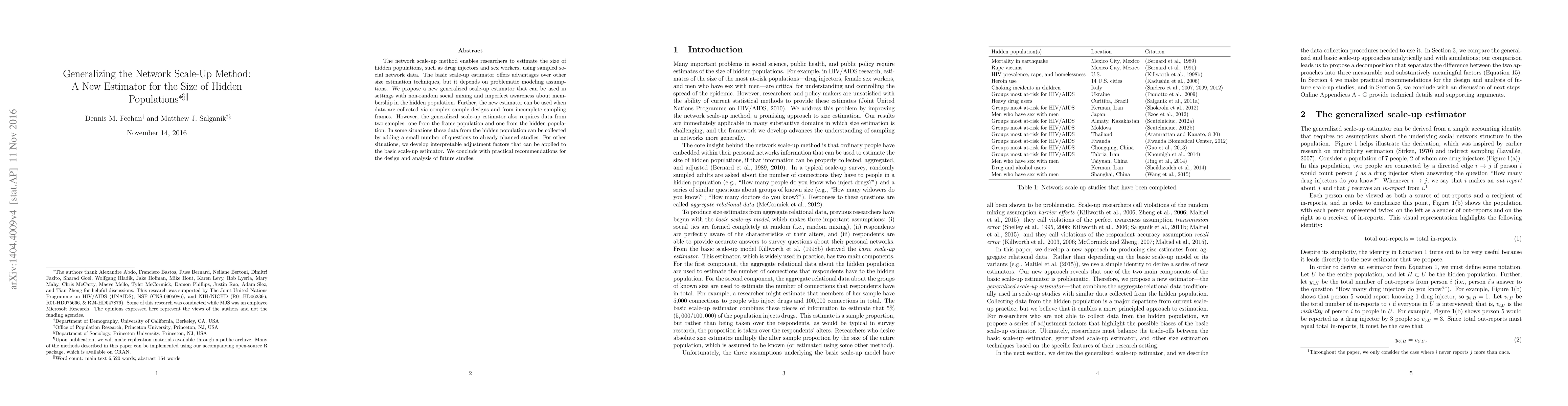 Researchers developed a new estimator to estimate hidden populations, such as drug injectors and sex workers, using social network data. The new generalized scale-up estimator can handle non-random social mixing and imperfect awareness, offering practical solutions for future studies.