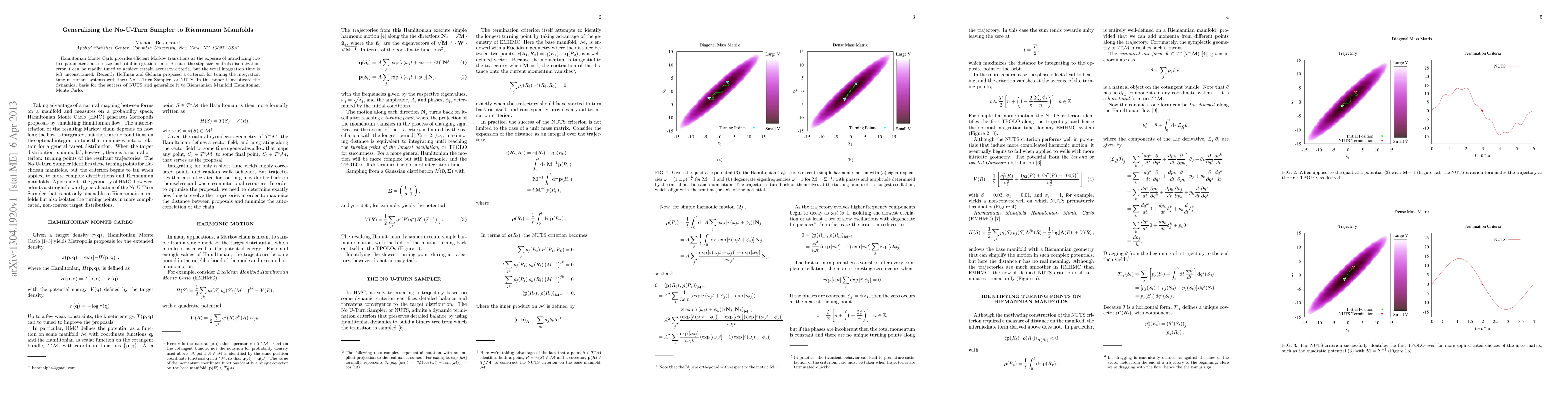 This paper explores the dynamics behind the success of the No-U-Turn Sampler (NUTS) in Hamiltonian Monte Carlo and extends its application to Riemannian Manifold Hamiltonian Monte Carlo, aiming to improve the efficiency of Markov transitions by tuning integration time.