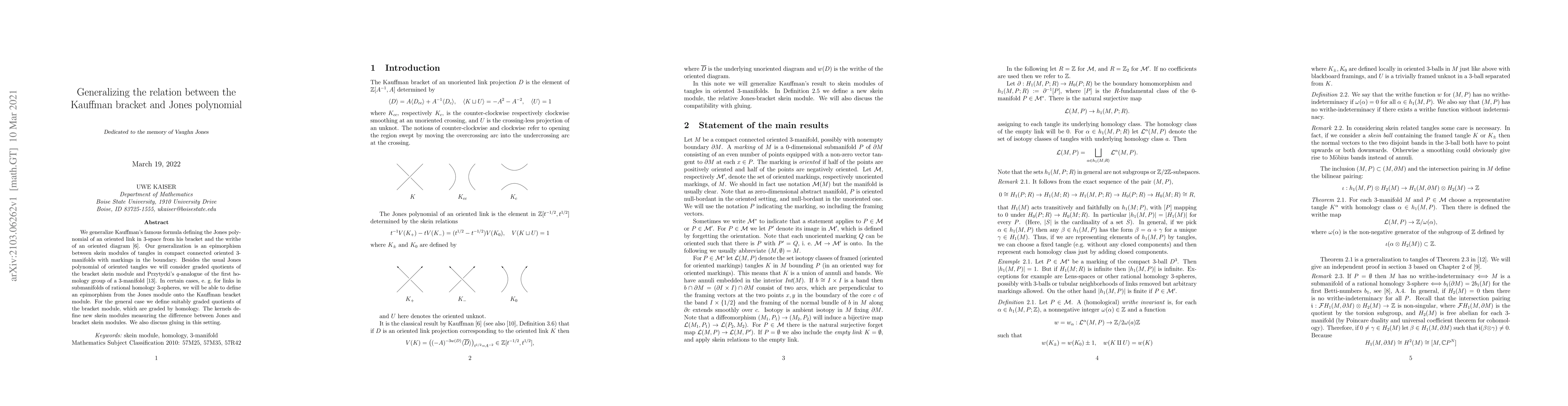 This paper generalizes Kauffman's formula relating the Kauffman bracket and Jones polynomial, defining an epimorphism between skein modules of tangles. It introduces new graded quotients and discusses applications to links in rational homology 3-spheres, alongside the construction of new skein modules measuring differences between Jones and bracket skein modules.