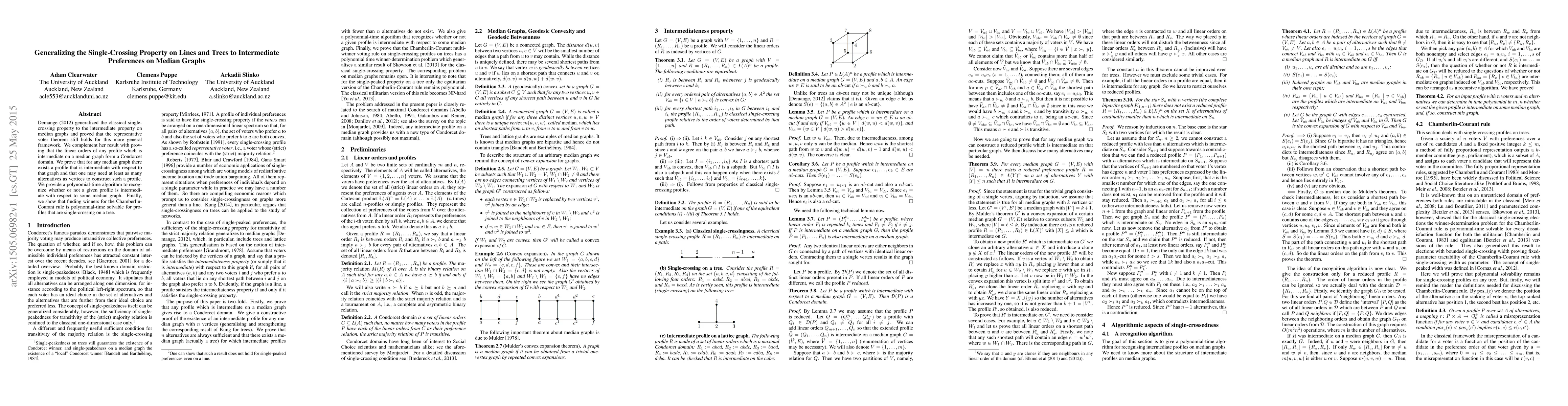 Demange (2012) generalized the classical single-crossing property to the intermediate property on median graphs and proved that the representative voter theorem still holds for this more general framework. We complement her result with proving that the linear orders of any profile which is intermediate on a median graph form a Condorcet domain. We prove that for any median graph there exists a profile that is intermediate with respect to that graph and that one may need at least as many alternatives as vertices to construct such a profile. We provide a polynomial-time algorithm to recognize whether or not a given profile is intermediate with respect to some median graph. Finally, we show that finding winners for the Chamberlin-Courant rule is polynomial-time solvable for profiles that are single-crossing on a tree.