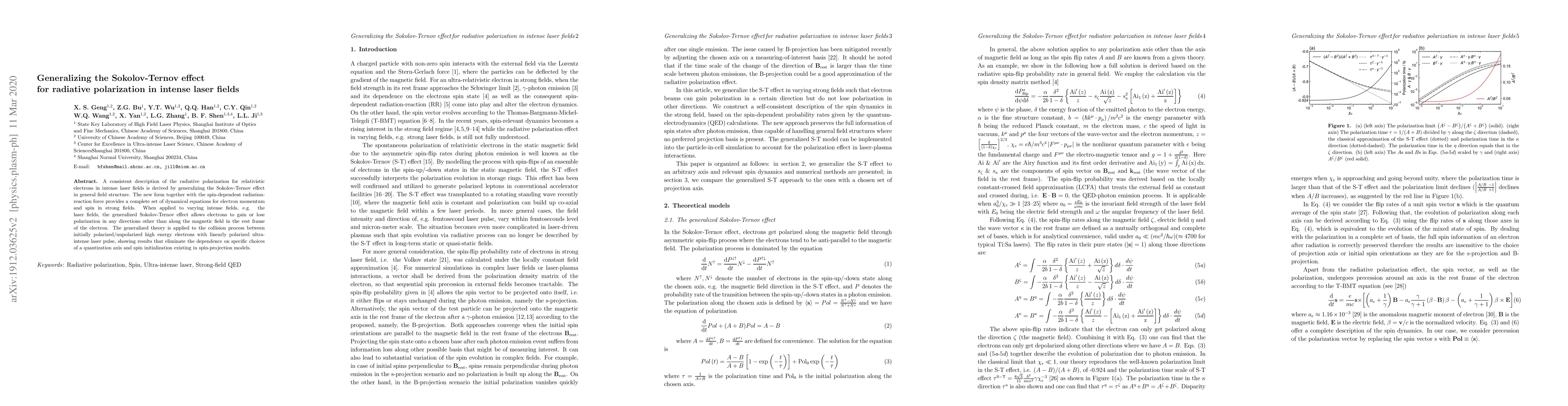 A consistent description of the radiative polarization for relativistic electrons in intense laser fields is derived by generalizing the Sokolov-Ternov effect in general field structure. The new form together with the spin-dependent radiation-reaction force provides a complete set of dynamical equations for electron momentum and spin in strong fields. When applied to varying intense fields, e.g. the laser fields, the generalized Sokolov-Ternov effect allows electrons to gain or lose polarization in any directions other than along the magnetic field in the rest frame of the electron. The generalized theory is applied to the collision process between initially polarized/unpolarized high energy electrons with linearly polarized ultra-intense laser pulse, showing results that eliminate the dependence on specific choices of a quantization axis and spin initialization existing in spin-projection models.