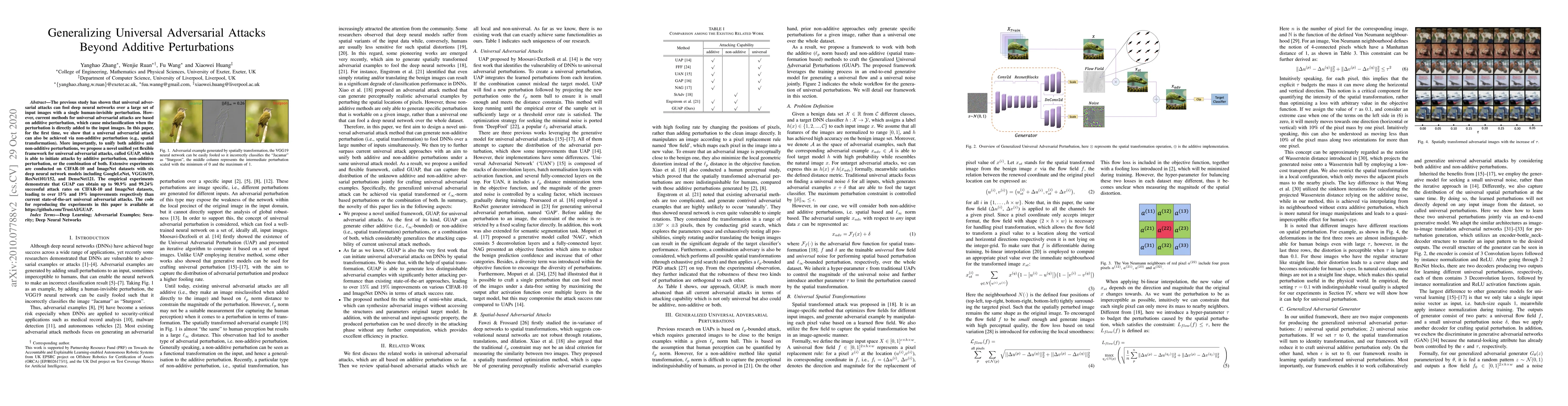This paper proposes GUAP, a unified framework for universal adversarial attacks that can employ non-additive perturbations like spatial transformations, in addition to additive perturbations, achieving up to 90.9% and 99.24% attack success rates on CIFAR-10 and ImageNet datasets respectively, surpassing current methods by over 15% and 19%.