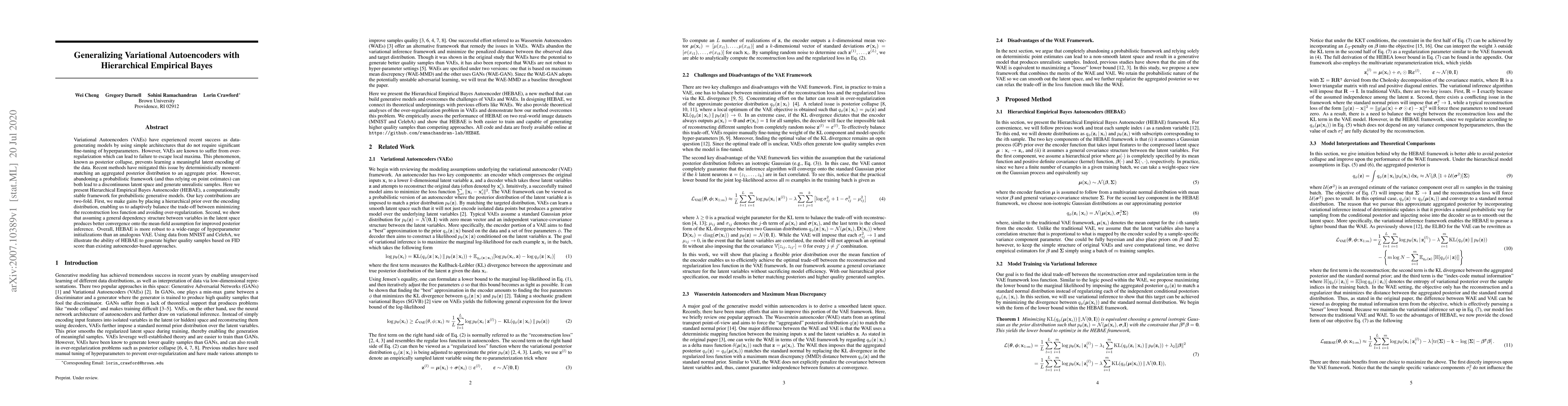 The paper introduces the Hierarchical Empirical Bayes Autoencoder (HEBAE) to address the over-regularization problem in Variational Autoencoders (VAEs), achieving better convergence and sample quality through a hierarchical prior and general dependency structure in the latent space. HEBAE demonstrates superior robustness and higher FID scores in generating samples from MNIST and CelebA compared to traditional VAEs.