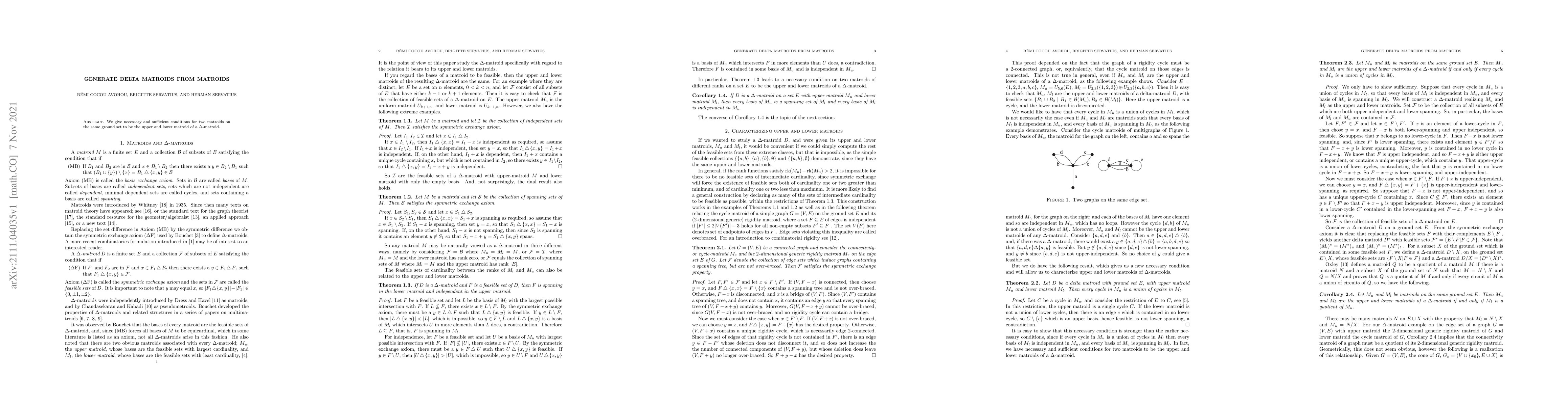 We give necessary and sufficient conditions for two matroids on the same ground set to be the upper and lower matroid of a $\Delta$-matroid.