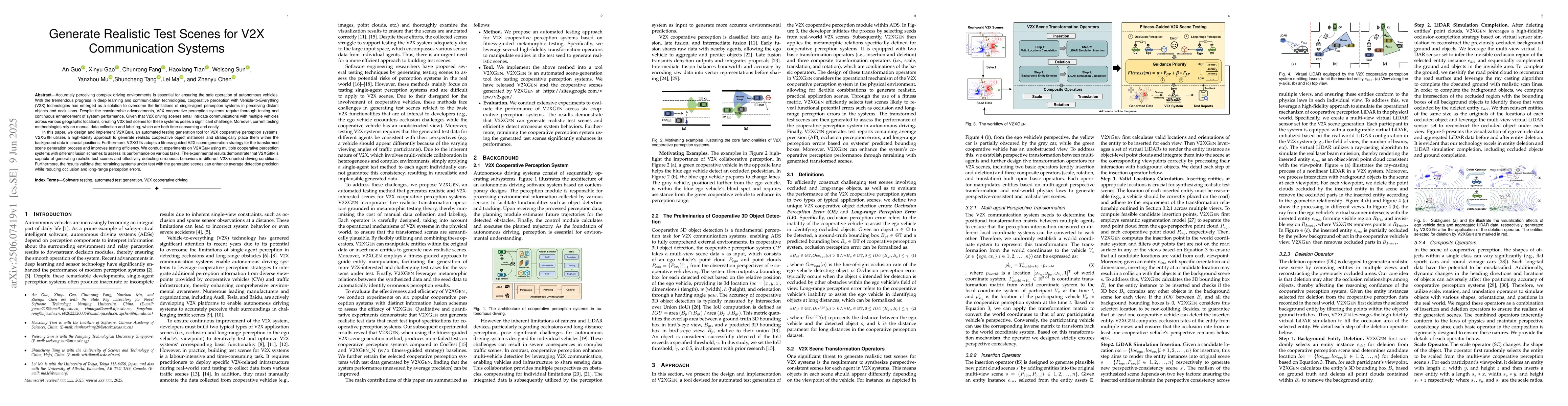Researchers developed V2XGen, a tool to generate realistic test scenes for Vehicle-to-Everything communication systems, improving testing efficiency and accuracy in detecting errors.