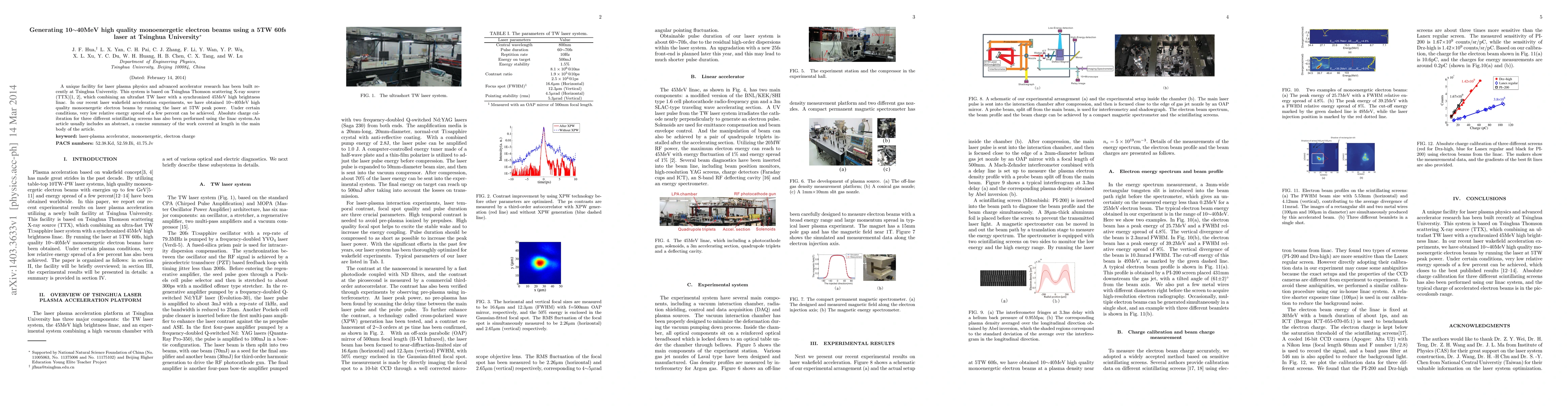 Summary: Researchers at Tsinghua University have developed a facility combining a 5TW 60fs laser and a 45MeV linac to generate 10~40MeV monoenergetic electron beams with low relative energy spread, achieving high-quality results in laser wakefield acceleration experiments. Calibration using scintillating screens has been performed for precise measurement.