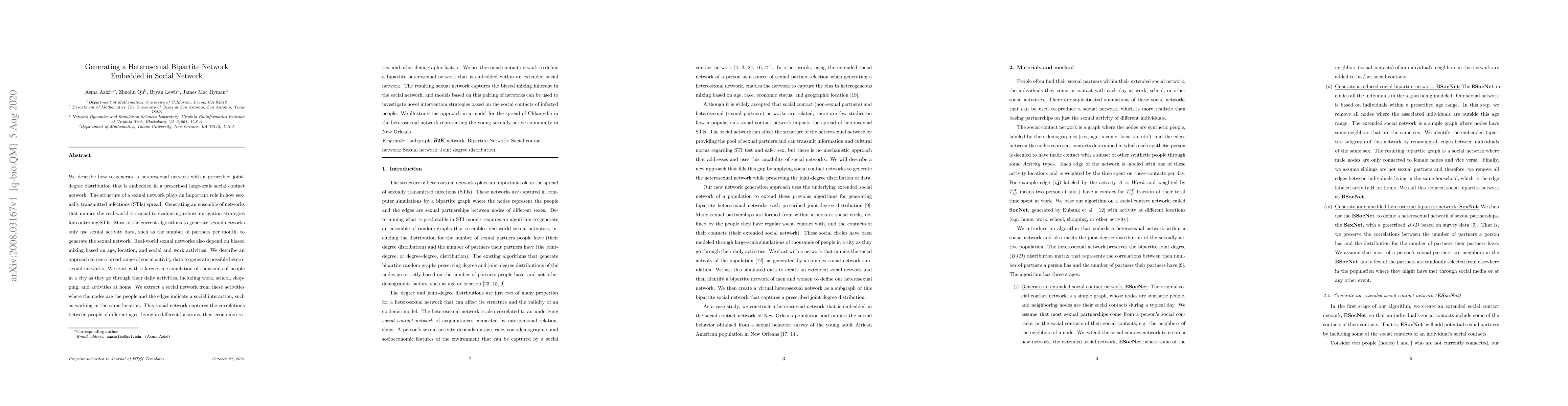 This paper presents a method to generate a heterosexual bipartite network embedded within a large-scale social contact network, capturing biased mixing based on demographic factors. The approach uses social activity data to simulate interactions and evaluate STI mitigation strategies, illustrated with a Chlamydia spread model in New Orleans.
