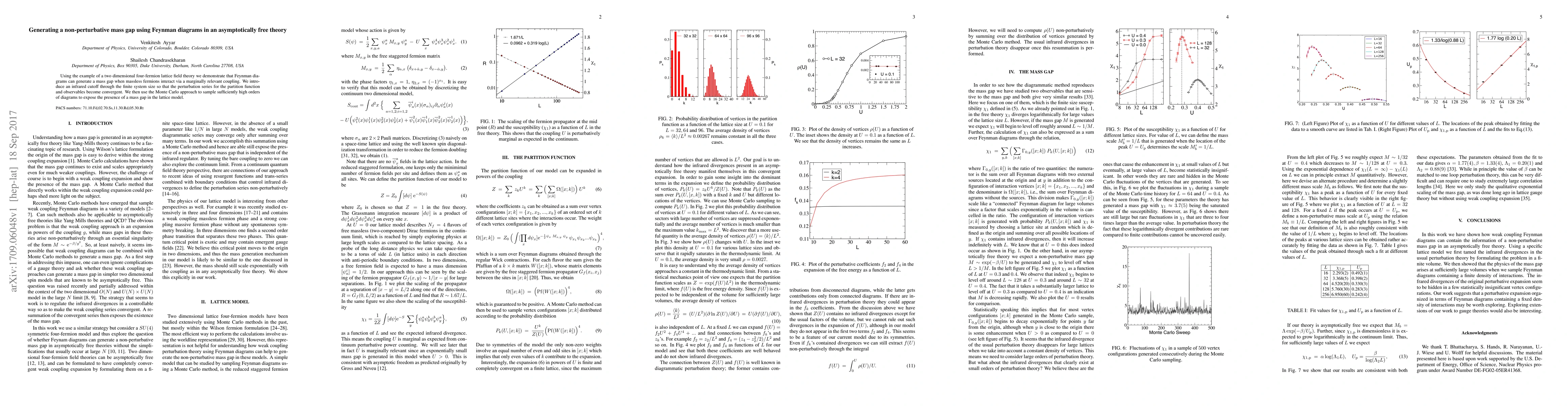 Researchers demonstrate that Feynman diagrams in a two-dimensional lattice field theory can generate a mass gap when massless fermions interact via a marginally relevant coupling, using Monte Carlo simulations to sample high-order diagrams.