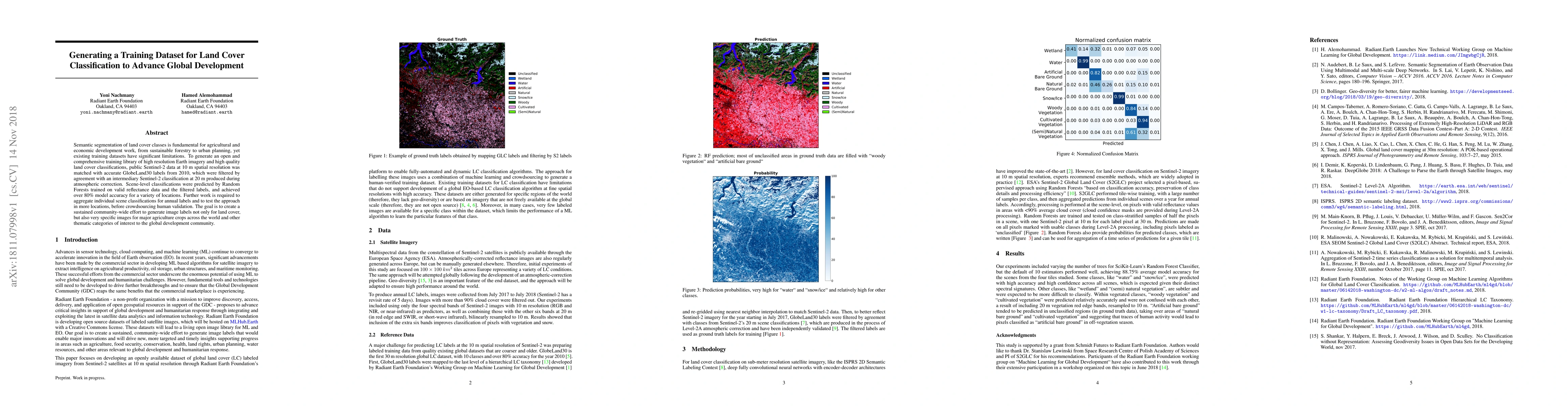 This paper develops a comprehensive training dataset for land cover classification using high-resolution Sentinel-2 imagery and GlobeLand30 labels, achieving over 80% accuracy with Random Forests. The goal is to expand this dataset for global agricultural and economic development applications.