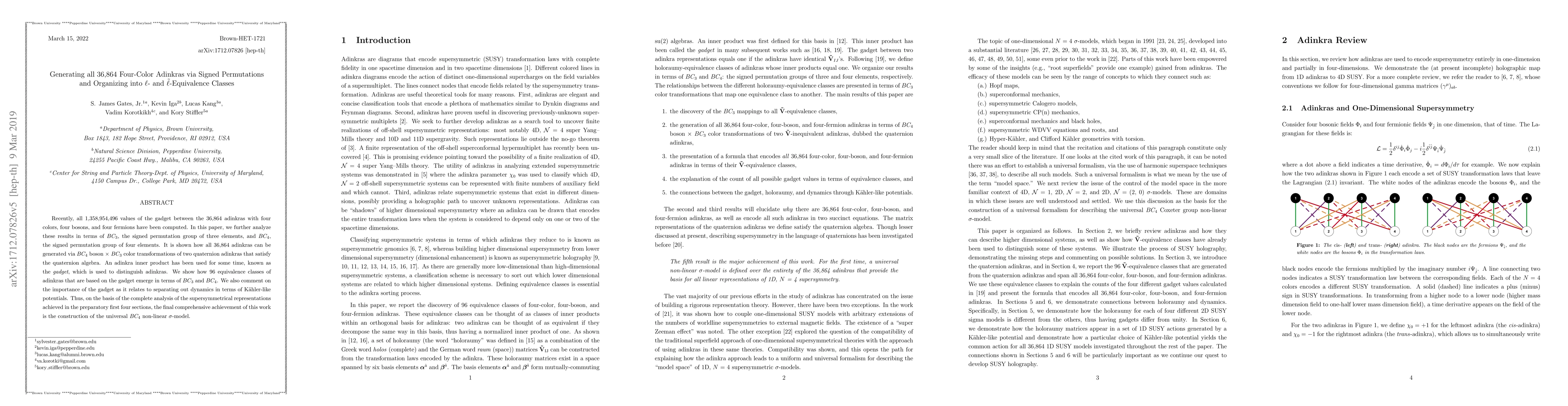 This paper explores the generation of all 36,864 four-color adinkras through transformations involving the signed permutation groups $BC_3$ and $BC_4$. It establishes equivalence classes based on the gadget, an adinkra inner product, and concludes with the construction of a universal $BC_4$ non-linear $\sigma$-model.