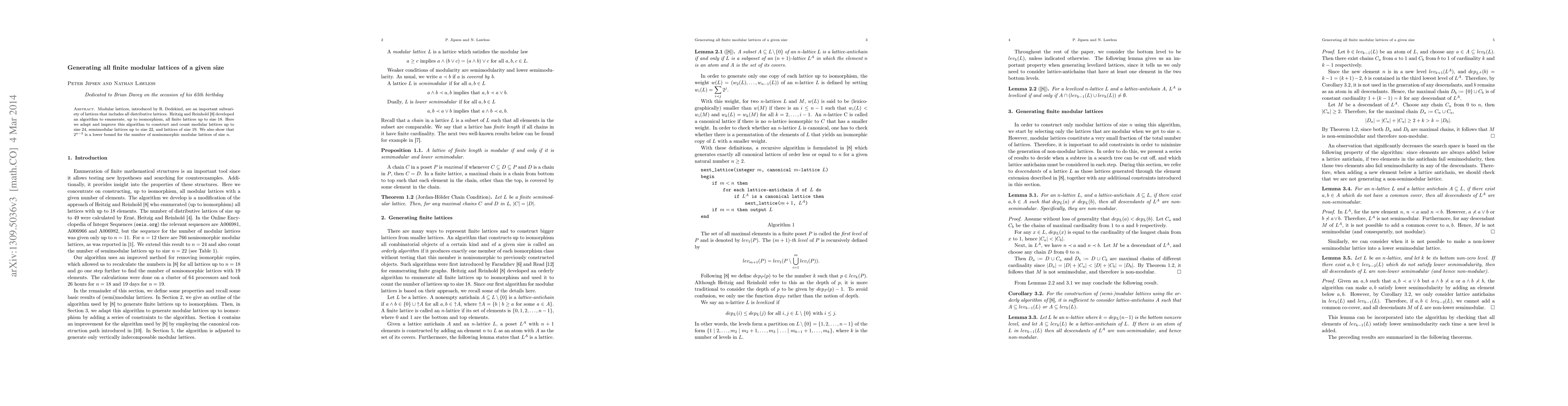 This research paper improves an existing algorithm to count modular lattices of up to size 24, providing a lower bound for the number of nonisomorphic modular lattices of size n as $2^{n-3}$.