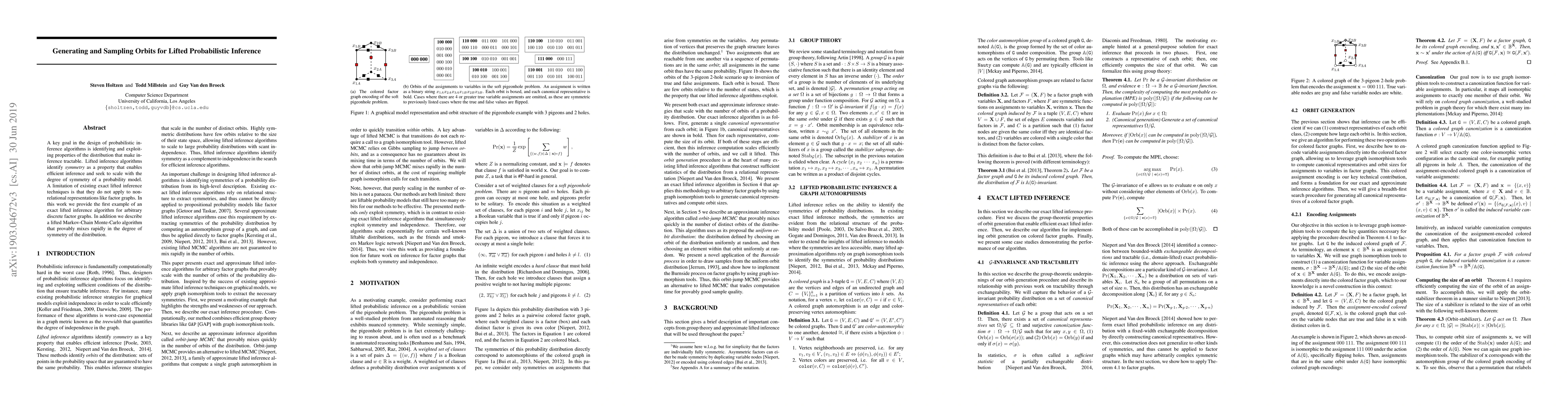 This paper introduces an exact lifted inference algorithm for discrete factor graphs and a lifted Markov-Chain Monte-Carlo method that efficiently samples orbits, leveraging symmetry to improve inference tractability.