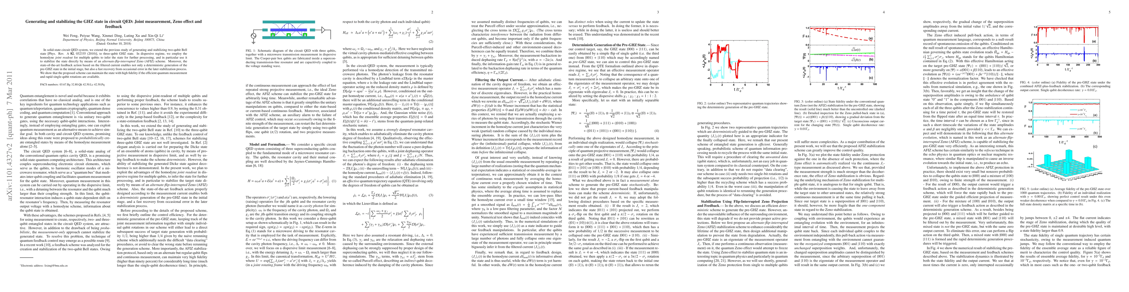 This paper proposes a method for generating and stabilizing a three-qubit Greenberger-Horne-Zeilinger (GHZ) state in a circuit quantum electrodynamics (QED) system using homodyne joint measurement, an alternate-flip-interrupted Zeno (AFIZ) scheme, and advanced feedback control based on filtered current. The scheme ensures high fidelity state maintenance through efficient quantum measurement and rapid single-qubit rotations.