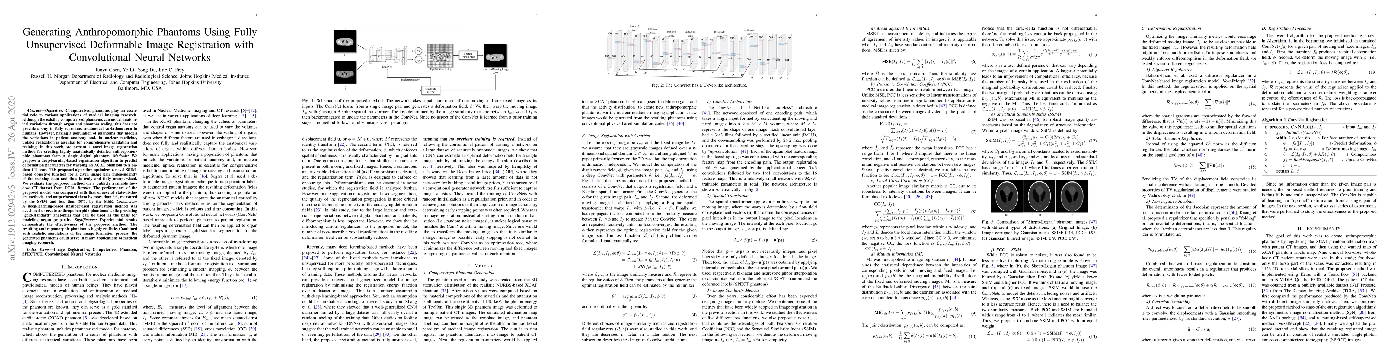 Objectives: Computerized phantoms play an essential role in various applications of medical imaging research. Although the existing computerized phantoms can model anatomical variations through organ and phantom scaling, this does not provide a way to fully reproduce anatomical variations seen in humans. However, having a population of phantoms that models the variations in patient anatomy and, in nuclear medicine, uptake realization is essential for comprehensive validation and training. In this work, we present a novel image registration method for creating highly anatomically detailed anthropomorphic phantoms from a single digital phantom. Methods: We propose a deep-learning-based registration algorithm to predict deformation parameters for warping an XCAT phantom to a patient CT scan. This proposed algorithm optimizes a novel SSIM-based objective function for a given image pair independently of the training data and thus is truly and fully unsupervised. We evaluate the proposed method on a publicly available low-dose CT dataset from TCIA. Results: The performance of the proposed model was compared with that of several state-of-the-art methods, and outperformed them by more than 8%, measured by the SSIM and less than 30%, by the MSE. Conclusion: A deep-learning-based unsupervised registration method was developed to create anthropomorphic phantoms while providing "gold-standard" anatomies that can be used as the basis for modeling organ properties. Significance: Experimental results demonstrate the effectiveness of the proposed method. The resulting anthropomorphic phantom is highly realistic. Combined with realistic simulations of the image formation process, the generated phantoms could serve in many applications of medical imaging research.