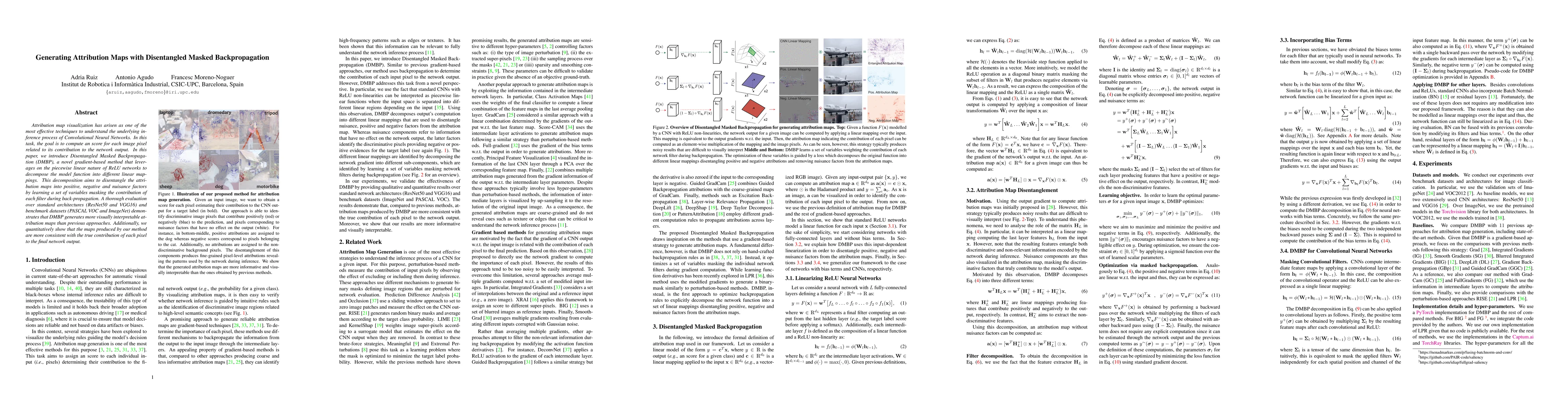 This paper introduces Disentangled Masked Backpropagation (DMBP), a gradient-based method that decomposes Convolutional Neural Networks into linear mappings to generate clearer attribution maps. DMBP disentangles positive, negative, and nuisance factors, resulting in more interpretable and accurate visualizations compared to previous techniques.