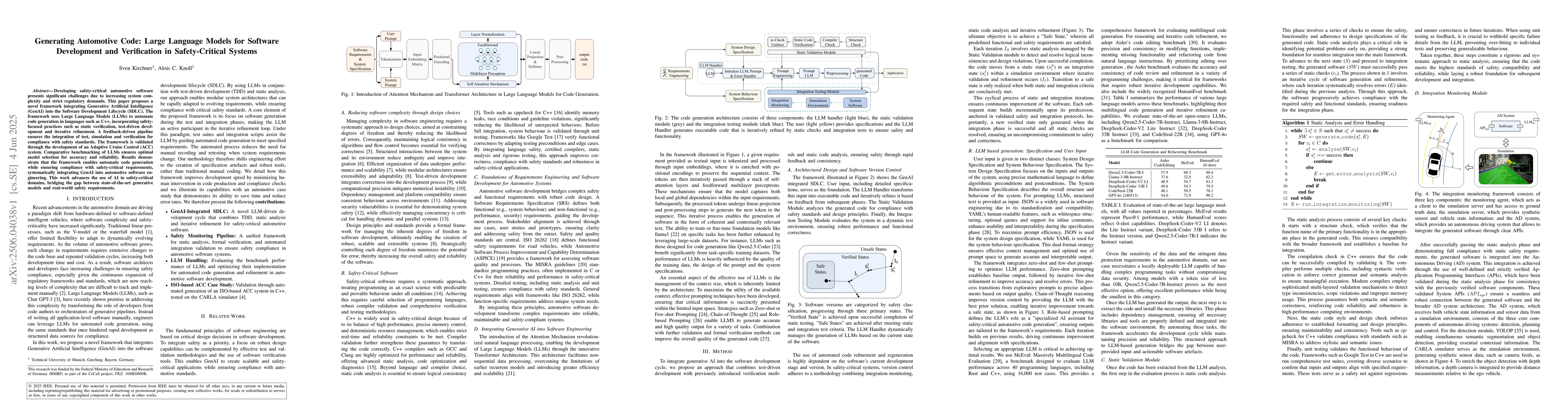 The paper proposes a framework integrating Generative Artificial Intelligence (GenAI) using Large Language Models (LLMs) into the Software Development Lifecycle (SDLC) for safety-critical automotive software development.