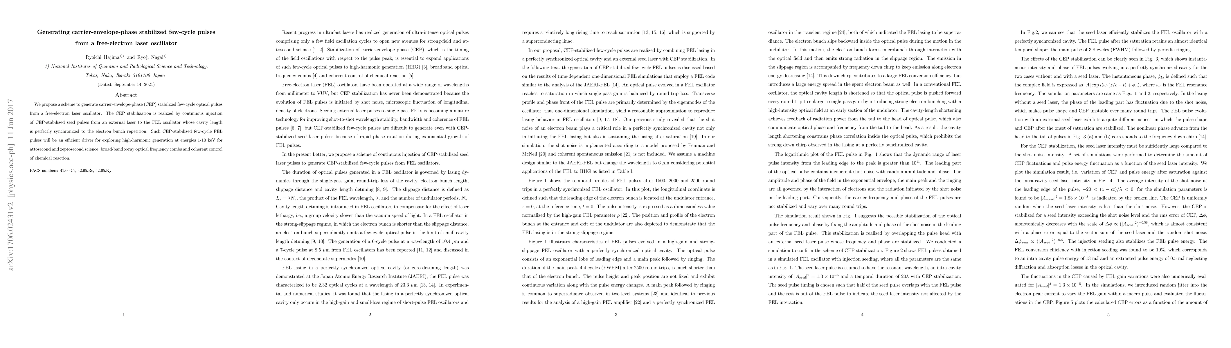 The paper presents a novel method for generating CEP-stabilized few-cycle pulses from a FEL oscillator using an external CEP-stabilized seed laser, synchronized with the electron bunch repetition rate.