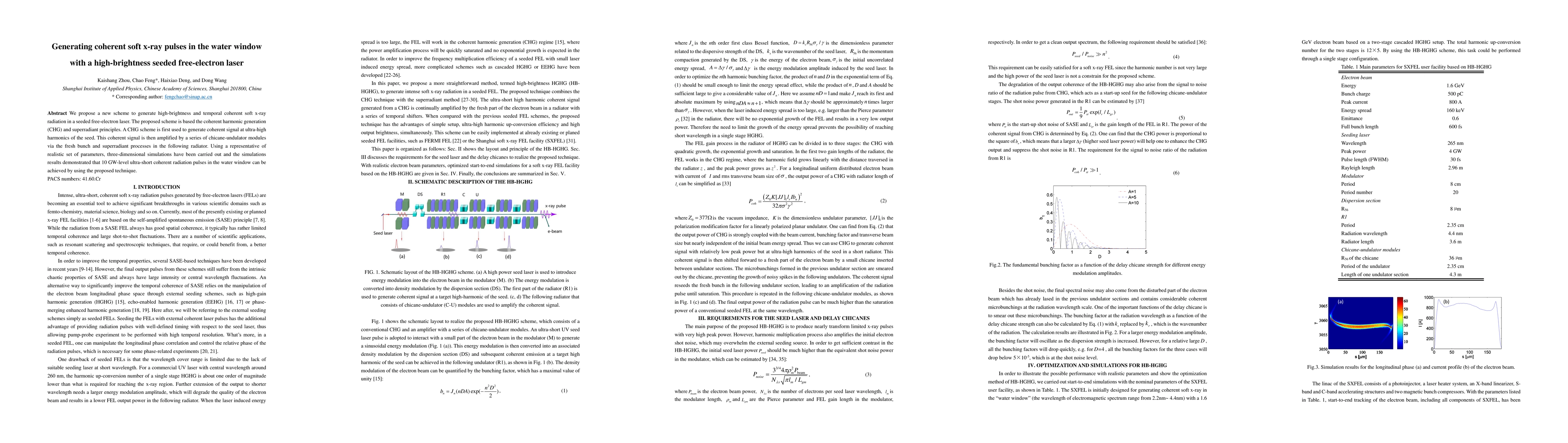 We propose a new scheme to generate high-brightness and temporal coherent soft x-ray radiation in a seeded free-electron laser. The proposed scheme is based the coherent harmonic generation (CHG) and superradiant principles. A CHG scheme is first used to generate coherent signal at ultra-high harmonics of the seed. This coherent signal is then amplified by a series of chicane-undulator modules via the fresh bunch and superradiant processes in the following radiator. Using a representative of realistic set of parameters, three-dimensional simulations have been carried out and the simulations results demonstrated that 10 GW-level ultra-short coherent radiation pulses in the water window can be achieved by using the proposed technique.