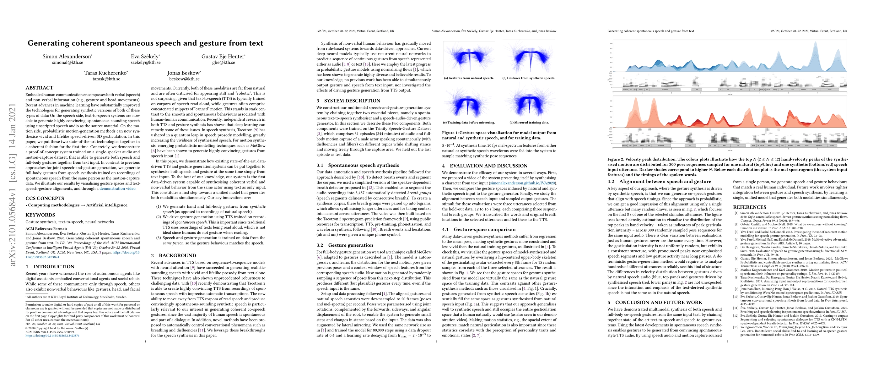 This paper presents a novel system that integrates advanced text-to-speech and motion-generation technologies to produce coherent, spontaneous speech and full-body gestures from textual input. Unlike previous methods, it trains speech synthesis on unscripted speech recordings from the same speaker as the motion-capture data to generate lifelike gestures.