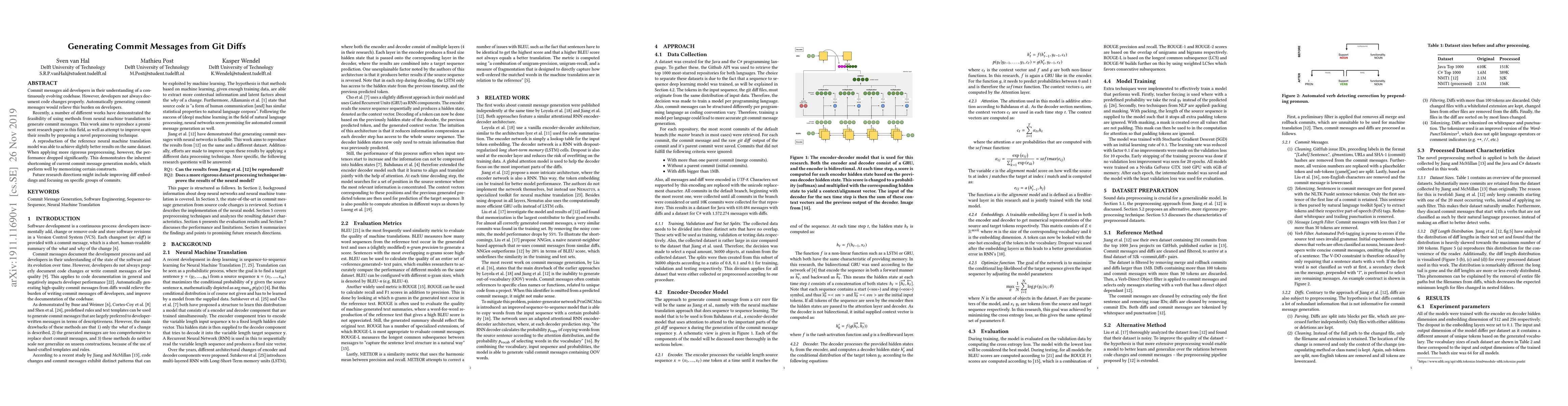 This paper explores the automatic generation of commit messages from Git diffs using neural machine translation techniques, aiming to improve upon existing models. While a reproduction of a leading model showed slight improvements, rigorous preprocessing led to performance drops, highlighting the need for future research to refine diff embeddings and target specific commit types.