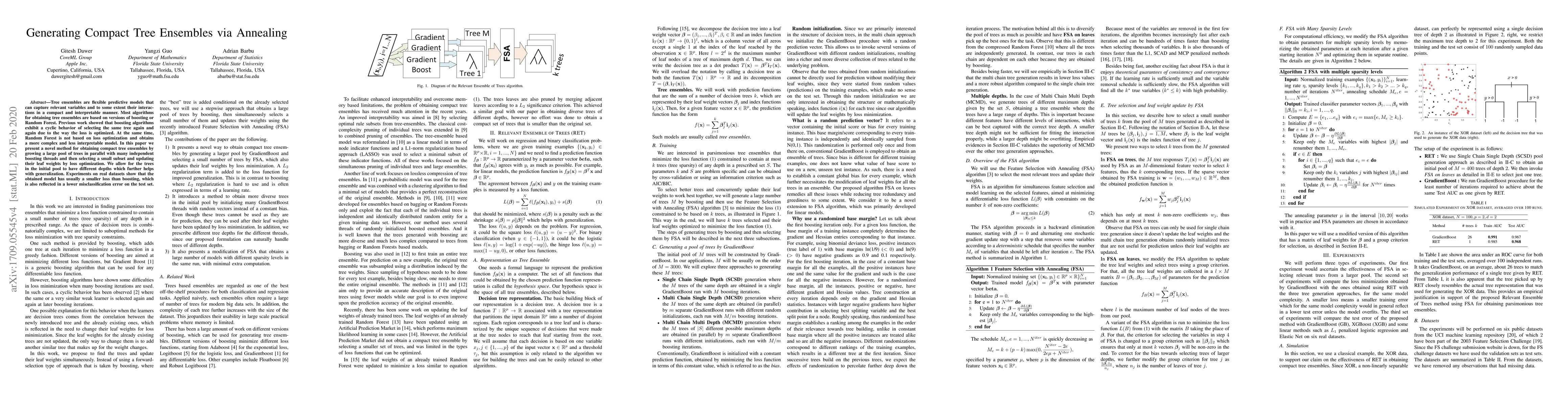 This paper introduces a novel method for generating compact tree ensembles by growing a large pool of parallel trees and selecting a subset for loss optimization, allowing for varying tree depths to enhance generalization. Experiments demonstrate that the resulting model typically has lower loss and misclassification error compared to traditional boosting methods.