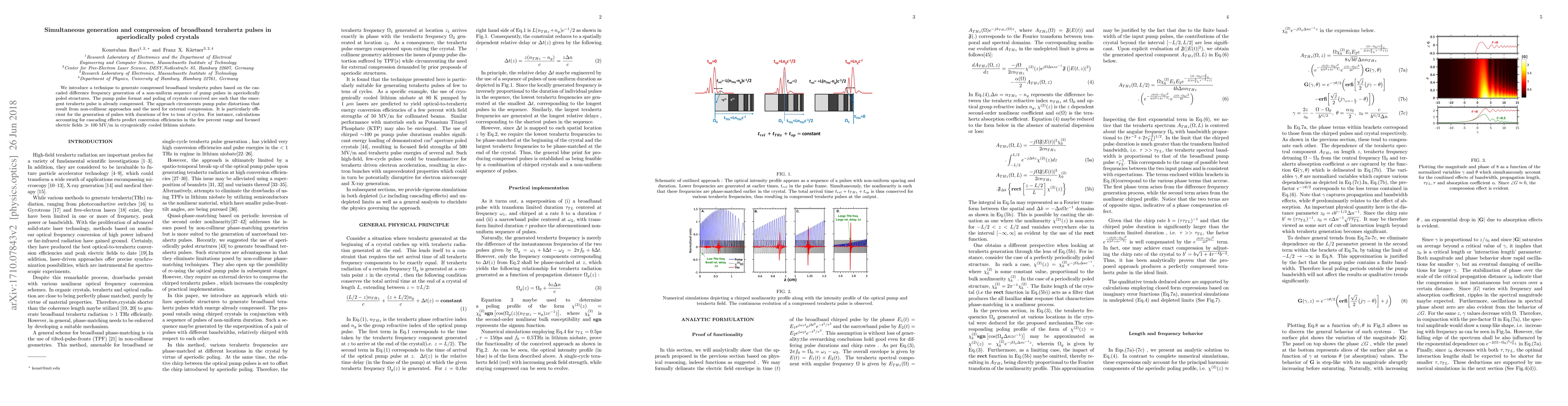 The research introduces a technique to generate compressed broadband terahertz pulses using aperiodically poled electro-optic crystals through difference frequency generation of optical pump radiation.