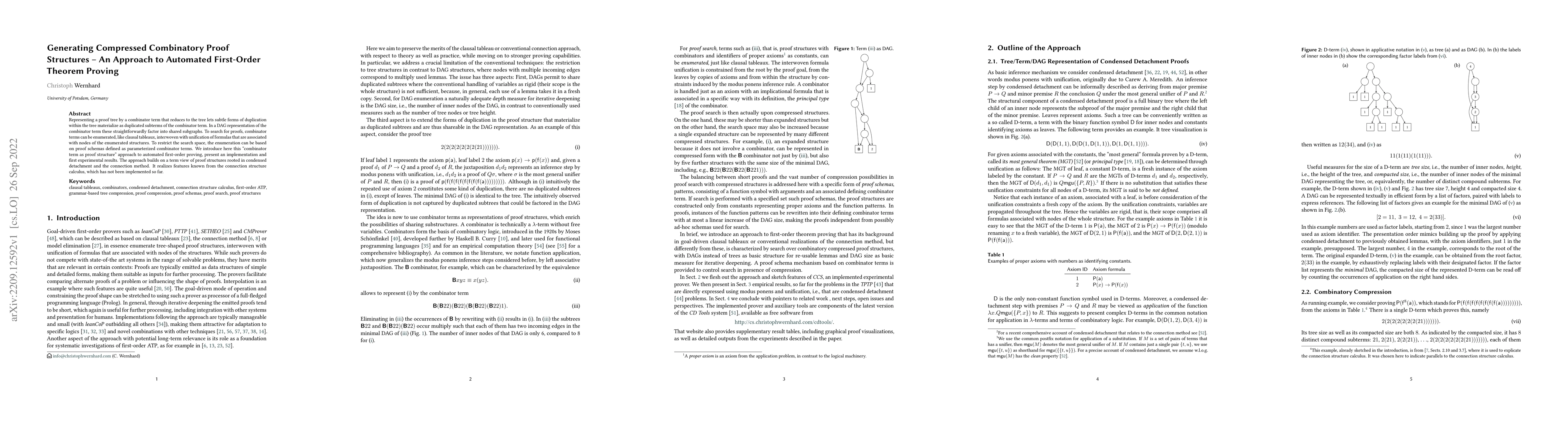 This paper introduces a novel approach to automated first-order theorem proving using combinator terms to represent proof trees, which allows for the identification and elimination of duplications. The method employs proof schemas and unification to search for proofs, and presents an implementation and initial experimental results.
