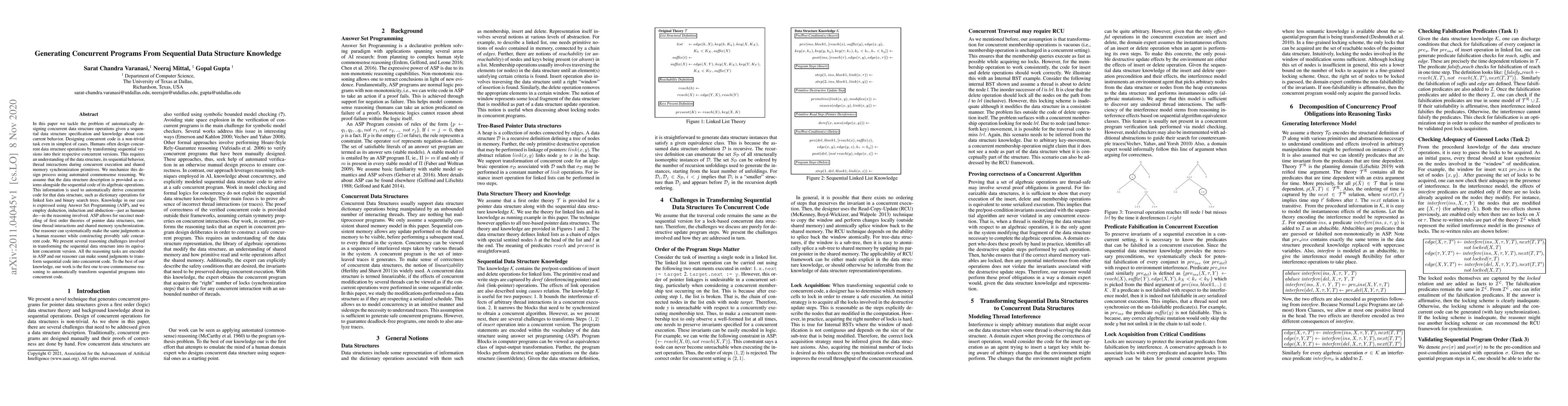 This paper presents an automated method for transforming sequential data structure operations into concurrent versions using commonsense reasoning and Answer Set Programming (ASP). The approach systematically derives concurrent code by modeling sequential behavior, thread interactions, and synchronization, achieving provably safe transformations.