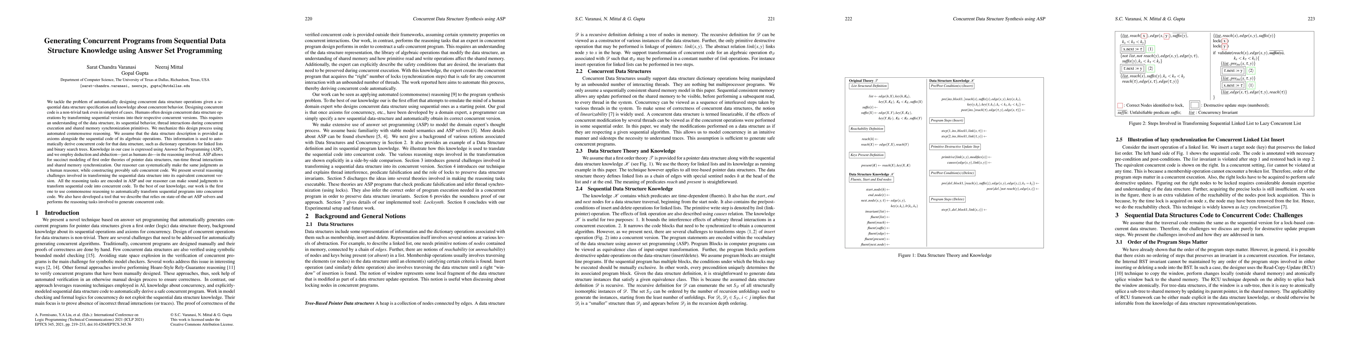 This paper presents an automated method for transforming sequential data structure operations into concurrent versions using Answer Set Programming (ASP). The approach leverages commonsense reasoning to systematically derive safe concurrent code from sequential specifications, addressing challenges in thread interactions and synchronization.