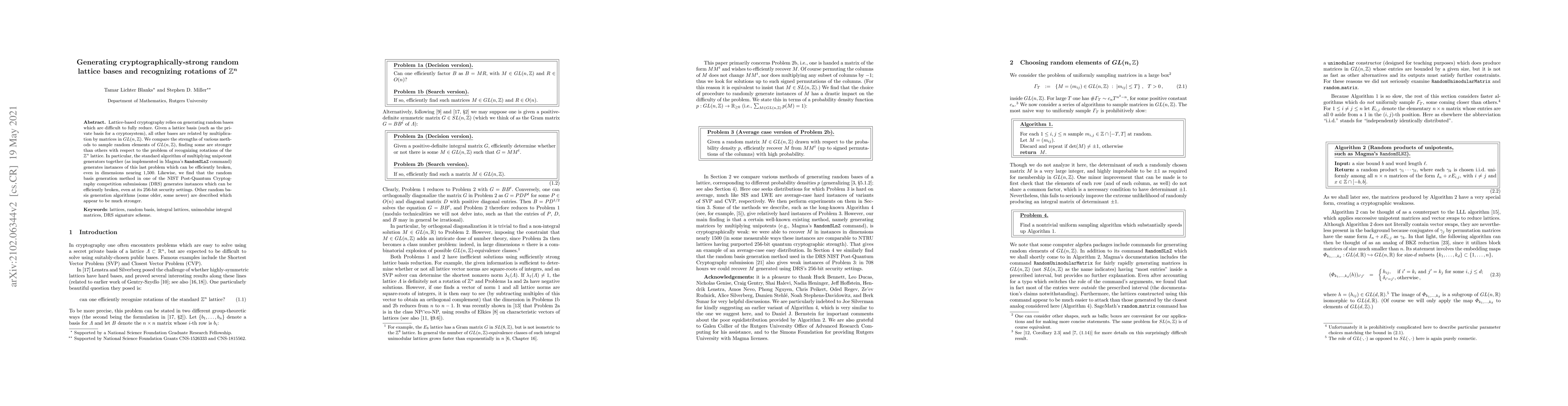 Lattice-based cryptography relies on generating random bases which are difficult to fully reduce. Given a lattice basis (such as the private basis for a cryptosystem), all other bases are related by multiplication by matrices in $GL(n,\mathbb{Z})$. We compare the strengths of various methods to sample random elements of $GL(n,\mathbb{Z})$, finding some are stronger than others with respect to the problem of recognizing rotations of the $\mathbb{Z}^n$ lattice. In particular, the standard algorithm of multiplying unipotent generators together (as implemented in Magma's RandomSLnZ command) generates instances of this last problem which can be efficiently broken, even in dimensions nearing 1,500. Likewise, we find that the random basis generation method in one of the NIST Post-Quantum Cryptography competition submissions (DRS) generates instances which can be efficiently broken, even at its 256-bit security settings. Other random basis generation algorithms (some older, some newer) are described which appear to be much stronger.