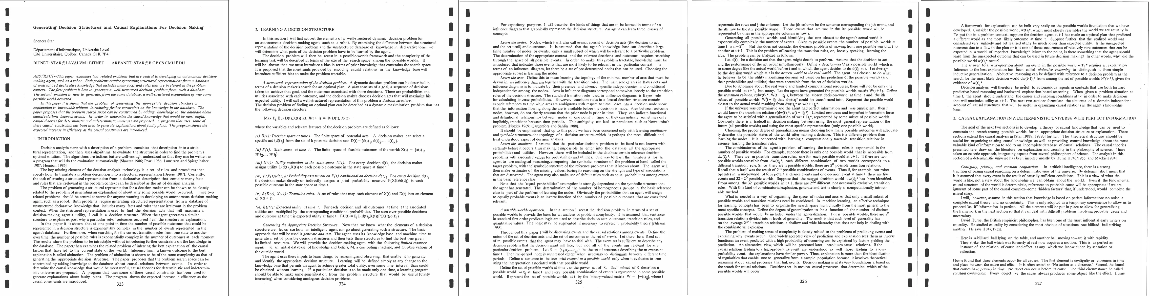 This paper examines two related problems that are central to developing an autonomous decision-making agent, such as a robot. Both problems require generating structured representafions from a database of unstructured declarative knowledge that includes many facts and rules that are irrelevant in the problem context. The first problem is how to generate a well structured decision problem from such a database. The second problem is how to generate, from the same database, a well-structured explanation of why some possible world occurred. In this paper it is shown that the problem of generating the appropriate decision structure or explanation is intractable without introducing further constraints on the knowledge in the database. The paper proposes that the problem search space can be constrained by adding knowledge to the database about causal relafions between events. In order to determine the causal knowledge that would be most useful, causal theories for deterministic and indeterministic universes are proposed. A program that uses some of these causal constraints has been used to generate explanations about faulty plans. The program shows the expected increase in efficiency as the causal constraints are introduced.