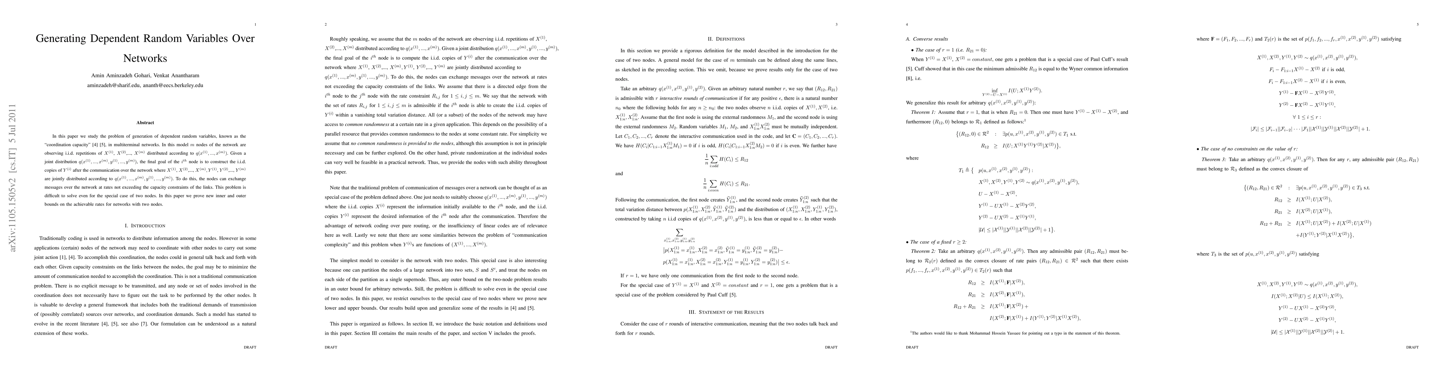 Researchers prove new bounds on achievable rates for networks with two nodes to generate dependent random variables over communication channels.