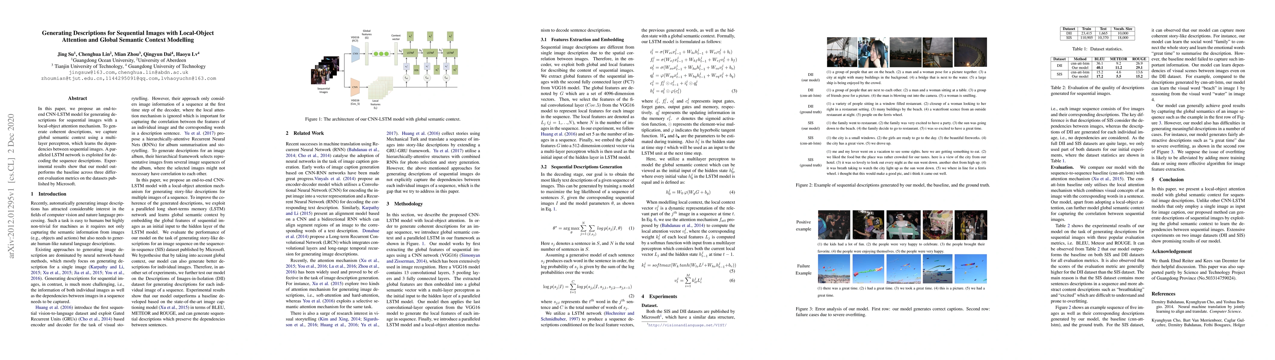 In this paper, we propose an end-to-end CNN-LSTM model for generating descriptions for sequential images with a local-object attention mechanism. To generate coherent descriptions, we capture global semantic context using a multi-layer perceptron, which learns the dependencies between sequential images. A paralleled LSTM network is exploited for decoding the sequence descriptions. Experimental results show that our model outperforms the baseline across three different evaluation metrics on the datasets published by Microsoft.
