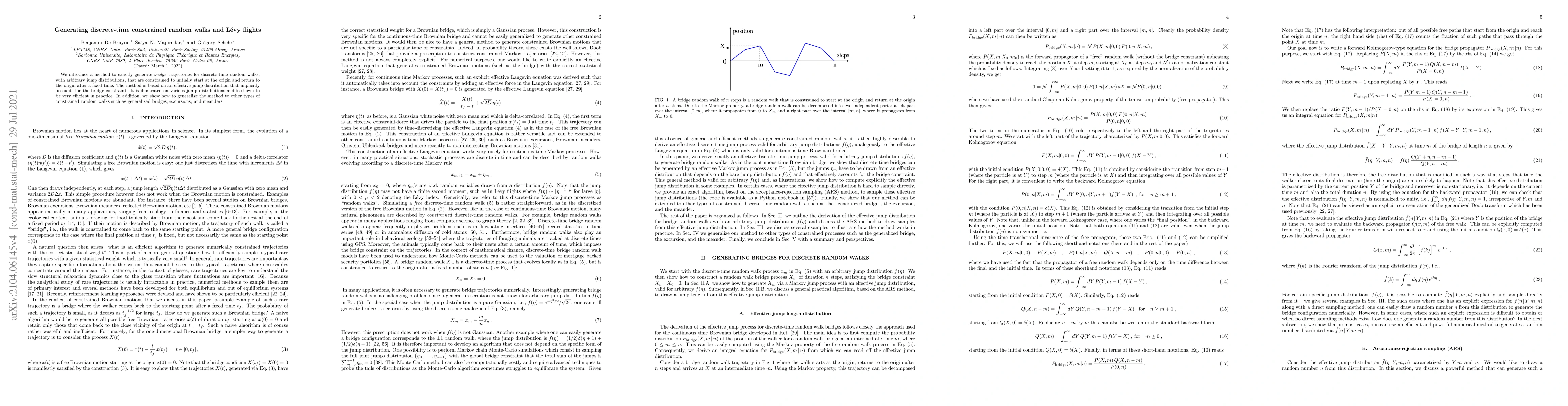 A new method generates discrete-time random walks with arbitrary jump distributions that return to the origin after a fixed time, using an effective jump distribution that implicitly accounts for the bridge constraint.