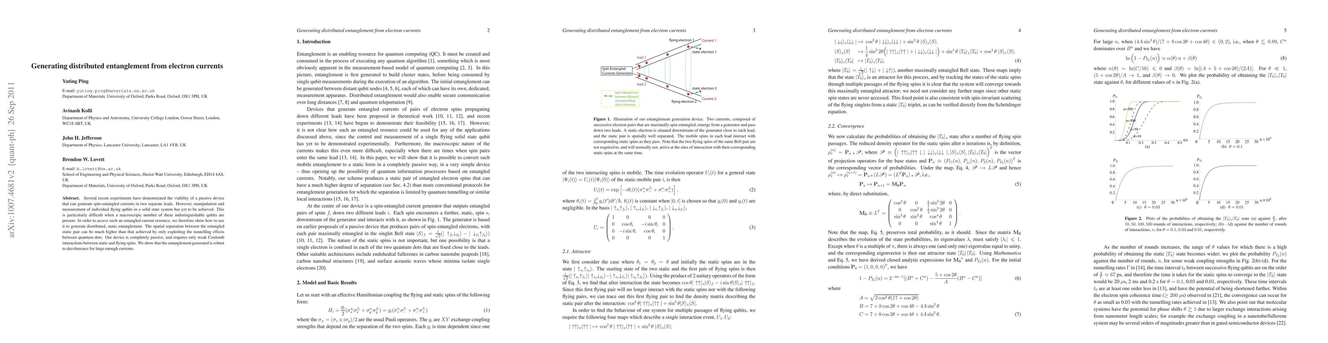 This paper explores a passive device that generates spin-entangled currents in separate leads, demonstrating how to create distributed, static entanglement over larger distances than achievable through conventional tunnelling. The device relies only on weak Coulomb interactions and shows robustness against decoherence for sufficient current levels.