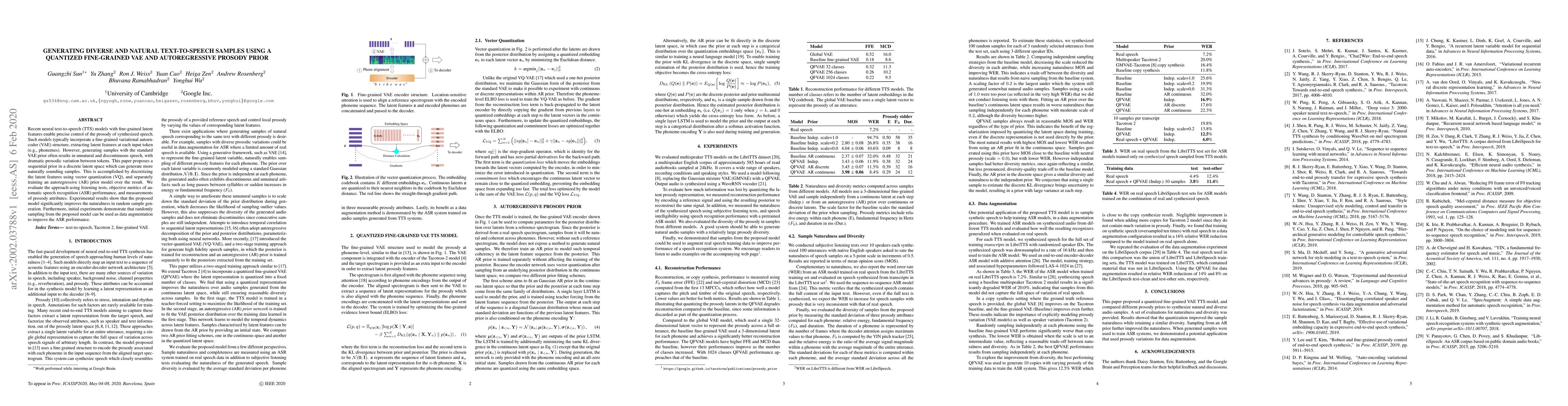 A new approach to generating natural-sounding text-to-speech samples using a quantized fine-grained VAE and auto-regressive prosody prior improves upon existing methods with more diverse and continuous speech outputs.