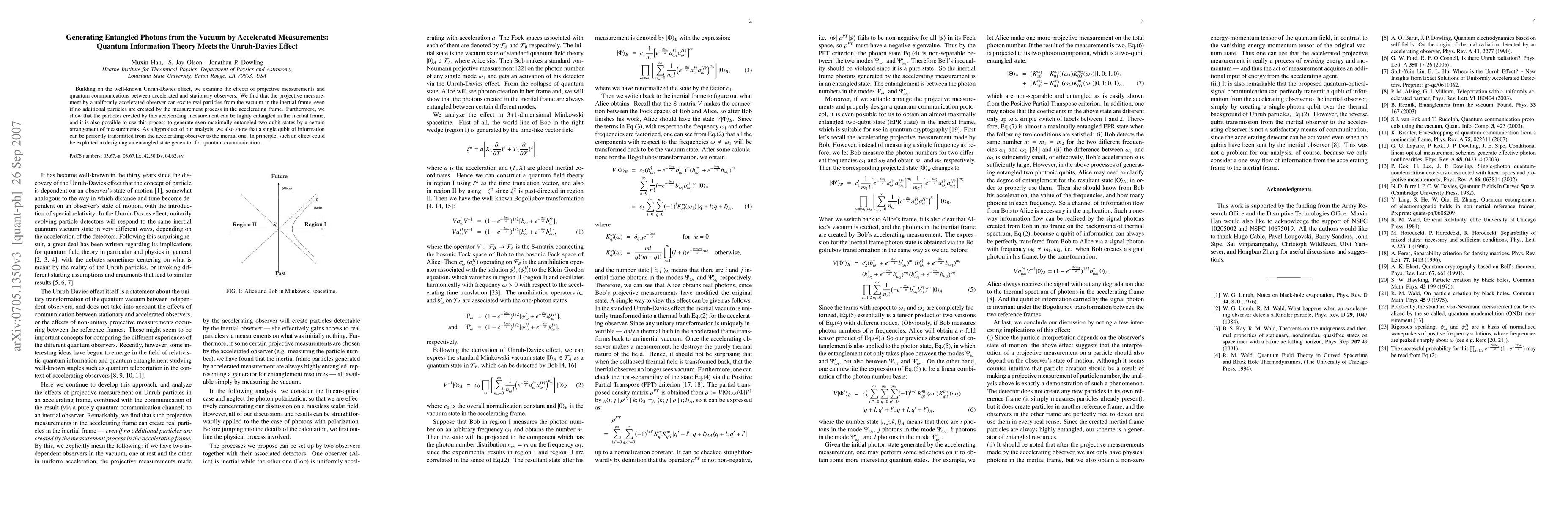 This paper explores how accelerated measurements can generate entangled photons from the vacuum state, leveraging the Unruh-Davies effect. It demonstrates that such measurements can create entangled particles in an inertial frame, even without particle creation in the accelerating frame, and proposes a method for generating maximally entangled states for quantum communication.