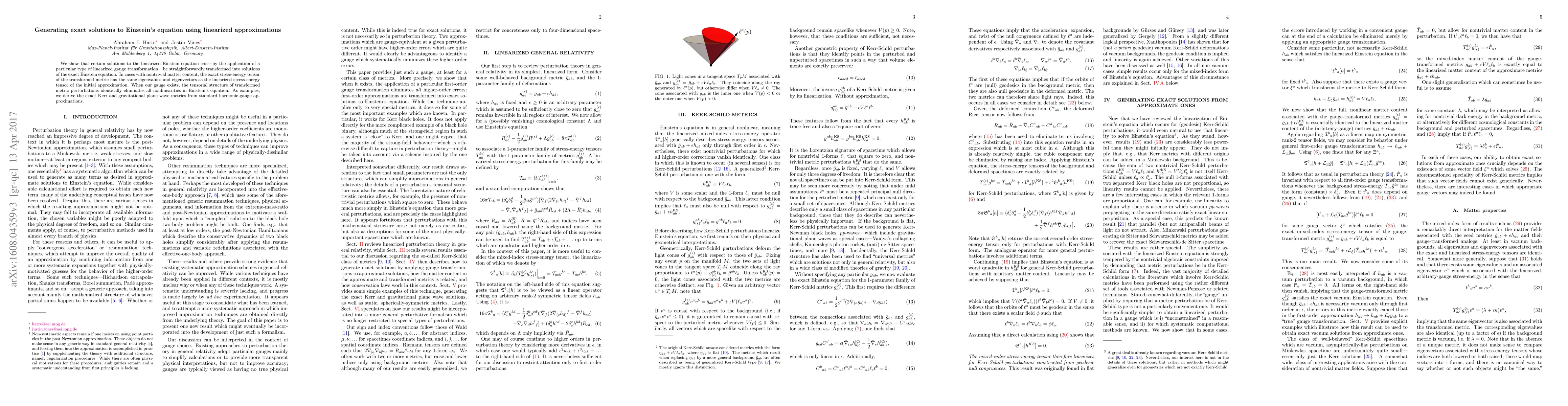 We show that certain solutions to the linearized Einstein equation can---by the application of a particular type of linearized gauge transformation---be straightforwardly transformed into solutions of the exact Einstein equation. In cases with nontrivial matter content, the exact stress-energy tensor of the transformed metric has the same eigenvalues and eigenvectors as the linearized stress-energy tensor of the initial approximation. When our gauge exists, the tensorial structure of transformed metric perturbations identically eliminates all nonlinearities in Einstein's equation. As examples, we derive the exact Kerr and gravitational plane wave metrics from standard harmonic-gauge approximations.