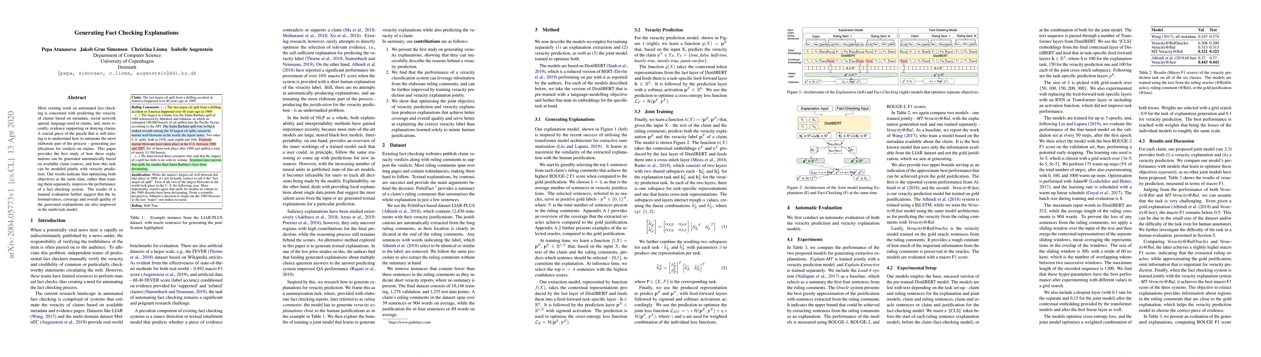 This paper explores the automation of generating justifications for fact-checking verdicts, showing that optimizing both veracity prediction and explanation generation together enhances system performance and improves the quality of explanations.