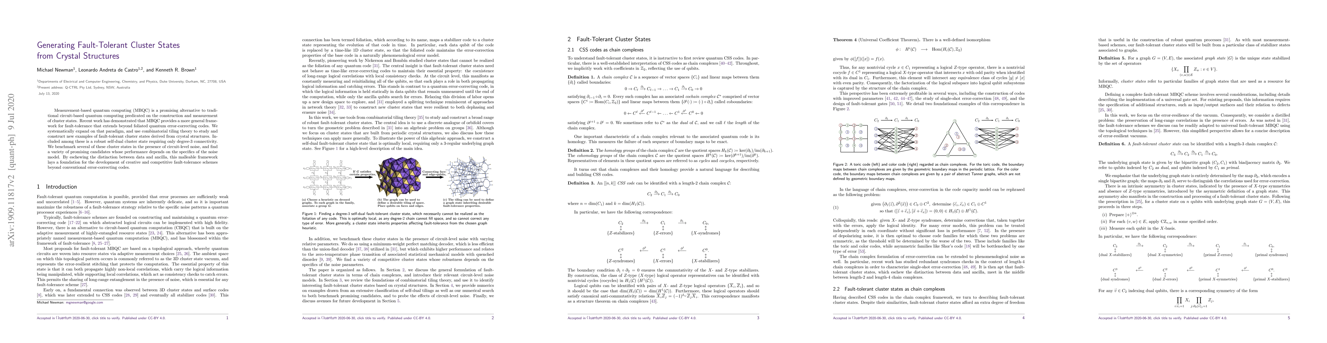 Measurement-based quantum computing (MBQC) is a promising alternative to traditional circuit-based quantum computing predicated on the construction and measurement of cluster states. Recent work has demonstrated that MBQC provides a more general framework for fault-tolerance that extends beyond foliated quantum error-correcting codes. We systematically expand on that paradigm, and use combinatorial tiling theory to study and construct new examples of fault-tolerant cluster states derived from crystal structures. Included among these is a robust self-dual cluster state requiring only degree-3 connectivity. We benchmark several of these cluster states in the presence of circuit-level noise, and find a variety of promising candidates whose performance depends on the specifics of the noise model. By eschewing the distinction between data and ancilla, this malleable framework lays a foundation for the development of creative and competitive fault-tolerance schemes beyond conventional error-correcting codes.