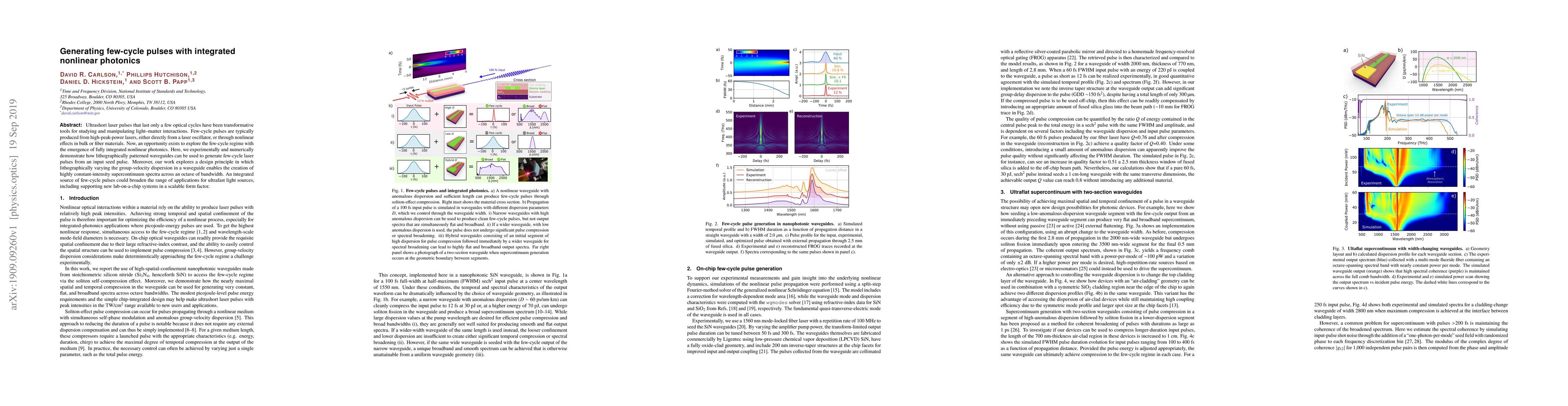 This paper demonstrates the generation of few-cycle laser pulses using integrated nonlinear photonics in lithographically patterned waveguides, achieving constant-intensity supercontinuum spectra across an octave. This approach could enable scalable, lab-on-a-chip systems with advanced ultrafast light sources.