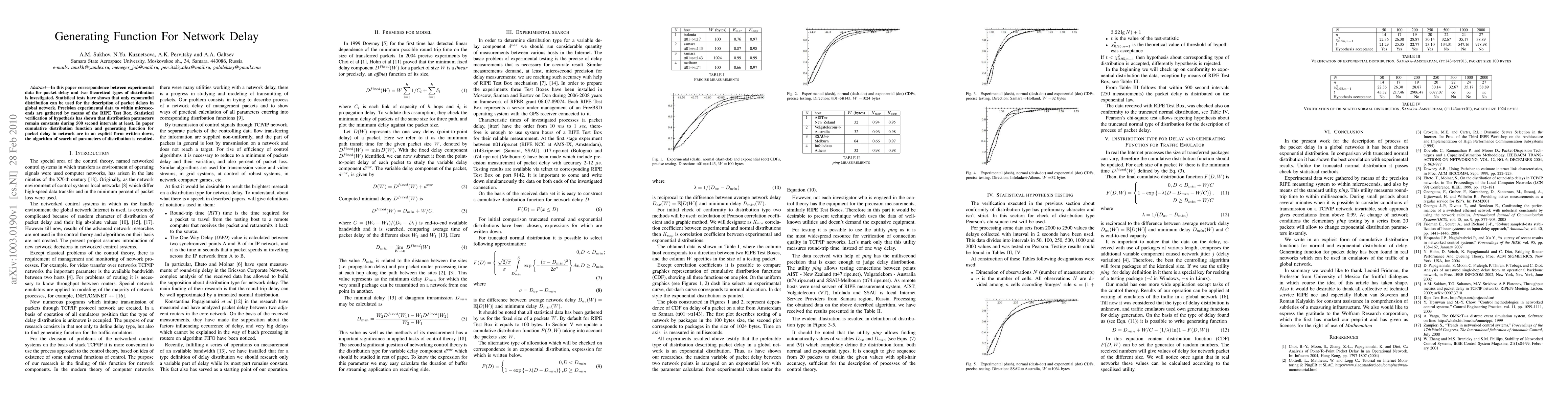 Researchers developed a generating function for network delay that accurately models packet delays in global networks using exponential distribution, with parameters remaining constant over 500-second intervals.