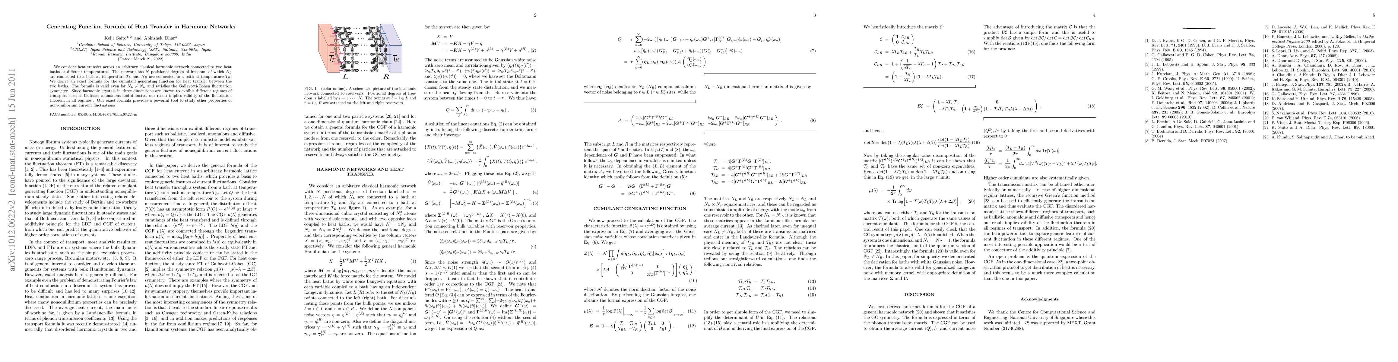Researchers derived an exact formula for heat transfer in harmonic networks connected to two heat baths at different temperatures, validating the fluctuation theorem across various regimes of transport.
