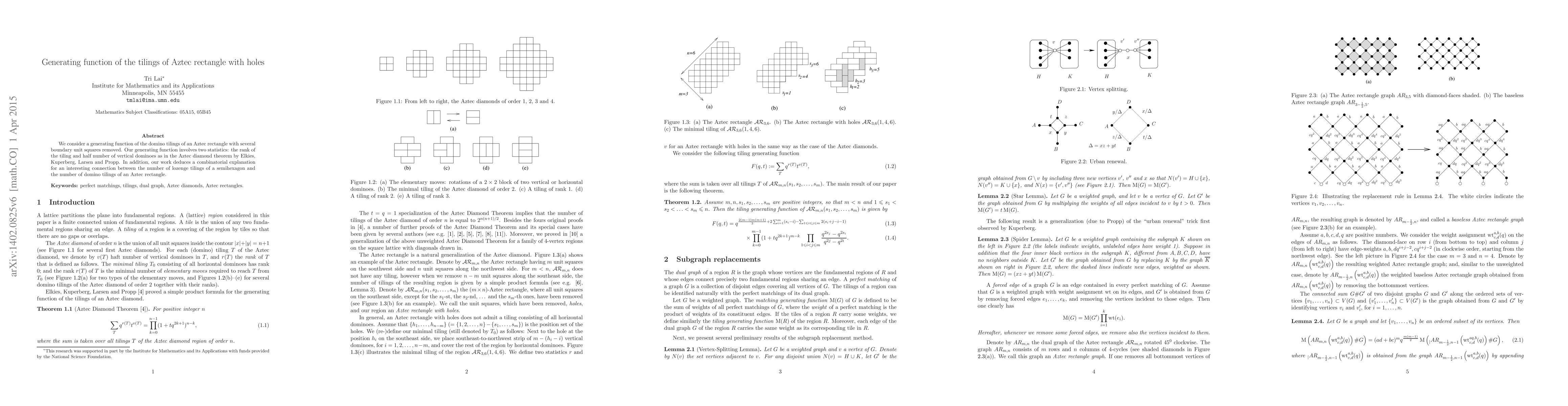 Researchers developed a generating function for domino tilings of Aztec rectangles with holes, linking it to lozenge tilings of semihexagons and providing new combinatorial insights.