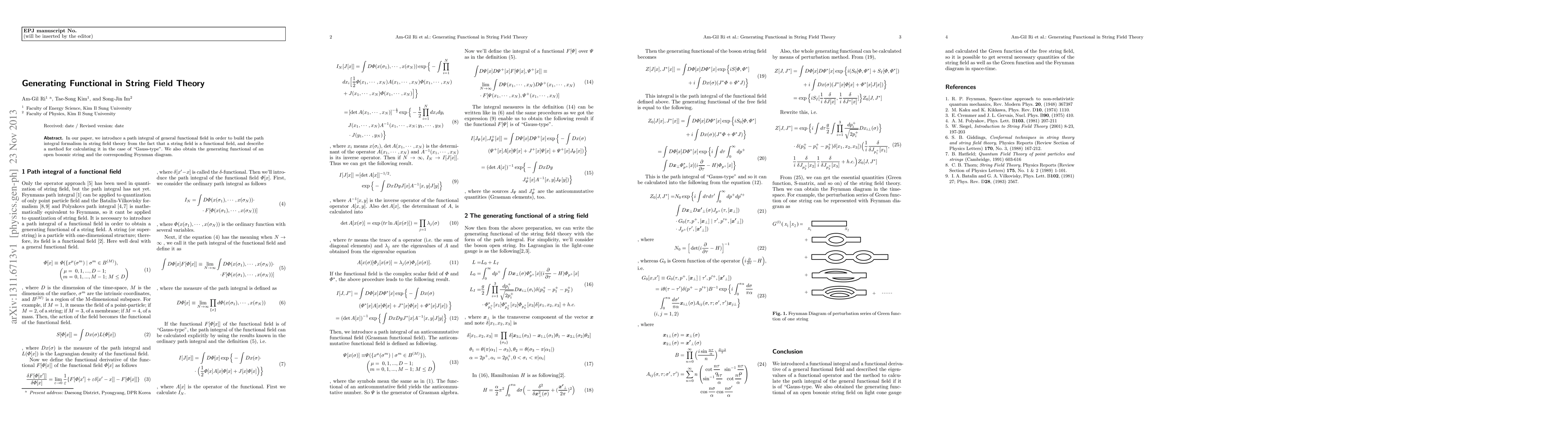 This paper develops a path integral formalism for string field theory by treating the string field as a functional field and introduces a method for calculating it in "Gauss-type" scenarios. It also derives the generating functional for an open bosonic string and presents the corresponding Feynman diagram.