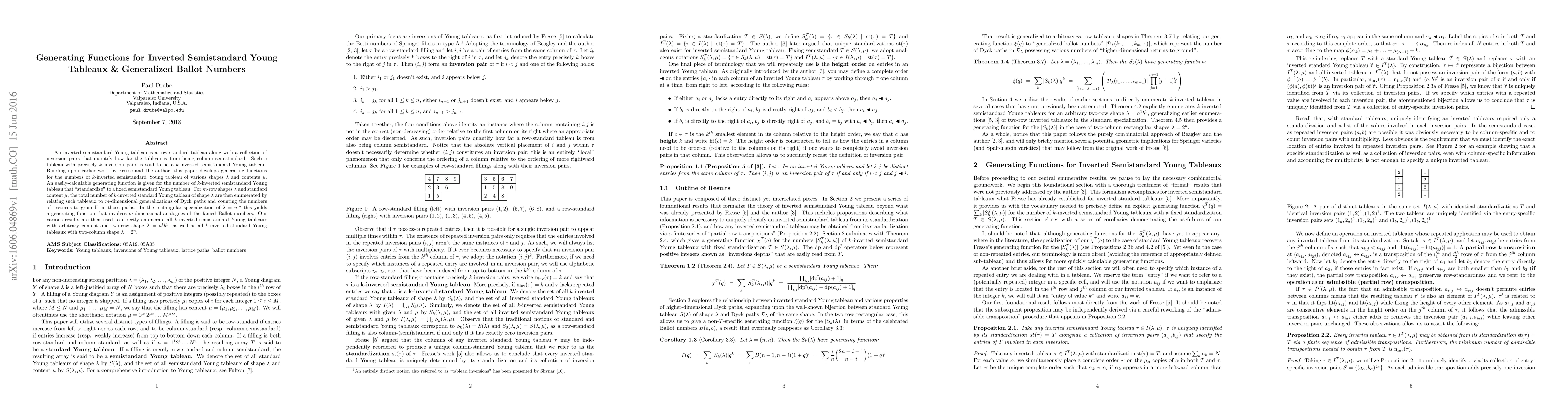 This paper develops generating functions for $k$-inverted semistandard Young tableaux, relating them to generalized Dyck paths and enumerating such tableaux via "returns to ground." It also extends the Ballot numbers to $m$-dimensional analogues for rectangular shapes.