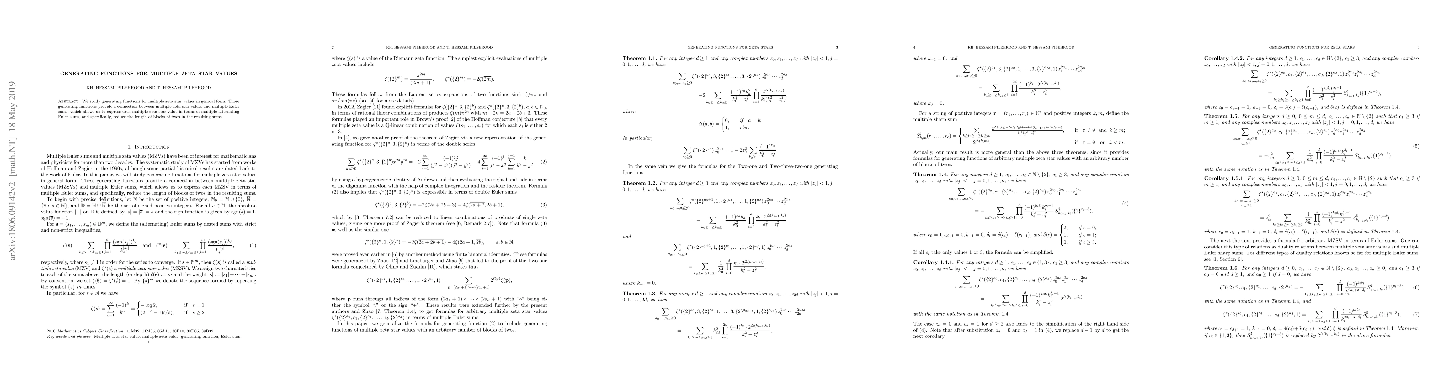 Title: Generating functions for multiple zeta star values Summary: This research develops generating functions for multiple zeta star values, linking them to multiple Euler sums and expressing them in terms of shorter blocks of alternating Euler sums.